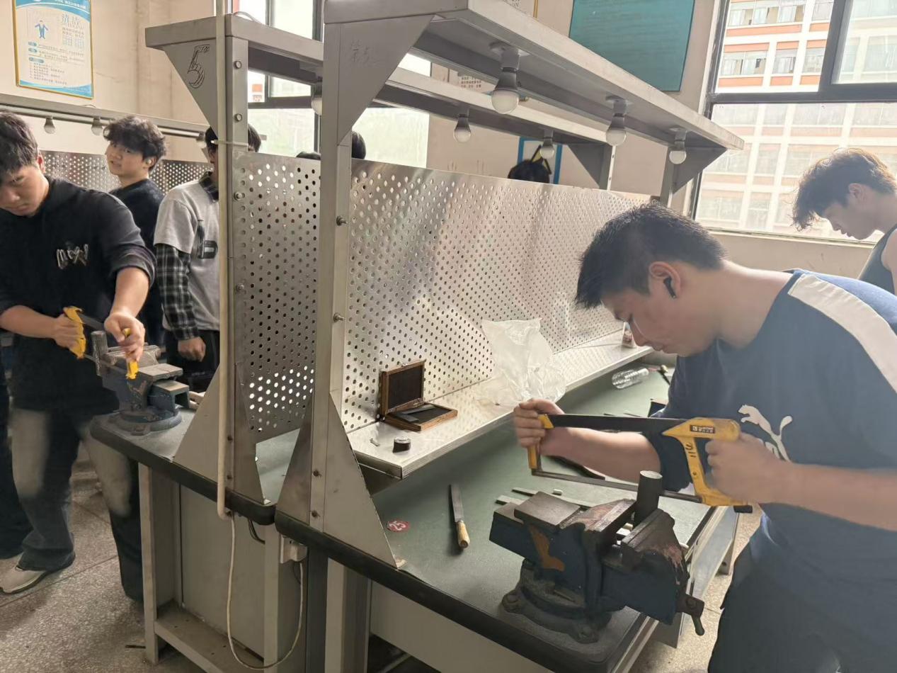 走进各实训中心,浓厚的“实战”氛围扑面而来。在电梯实训区,学生们围绕电梯门系统与轿厢结构,在罗祥仁、孙祎等老师的指导下,进行着认真的调试与测量;钳工实训区内,锤击声、锉磨声此起彼伏,同学们在骆彩云老师的带领下,正全神贯注地制作着“錾口锤子”,从划线到加工,一丝不苟;而在数控机床操作区,刘彦辰、汪昌荣、唐浩强等老师正穿梭于设备之间,指导学生进行机床对刀与程序仿真,屏幕上跳动的代码即将驱动设备加工出精密的轴类零件。