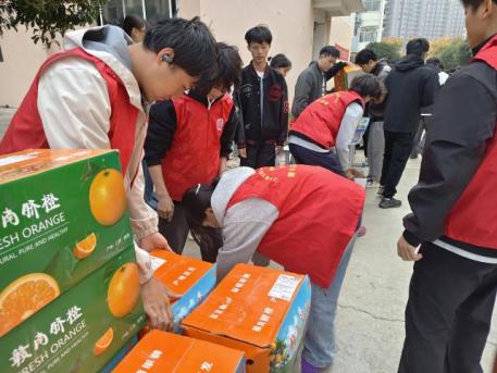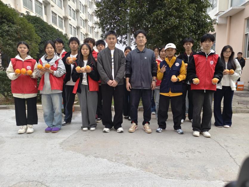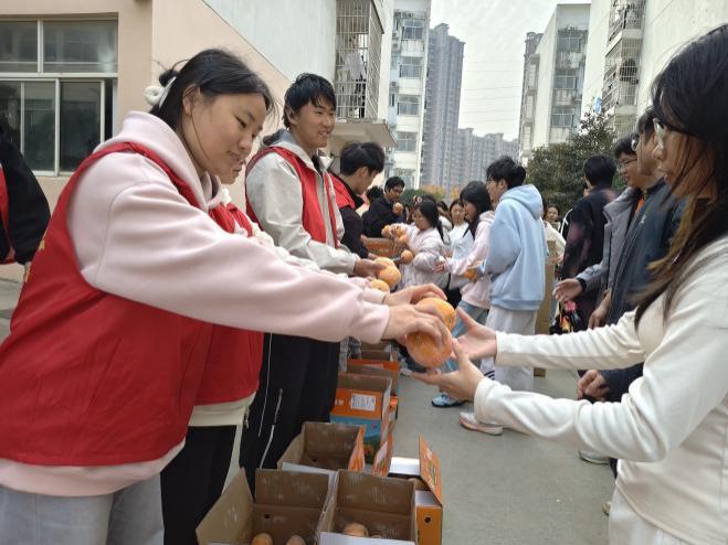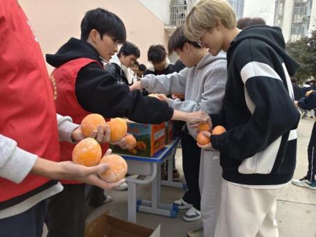 活动现场气氛热烈,学生踊跃参与。金黄的橙子寓意“平安”,承载着学院对学生的诚挚祝愿。