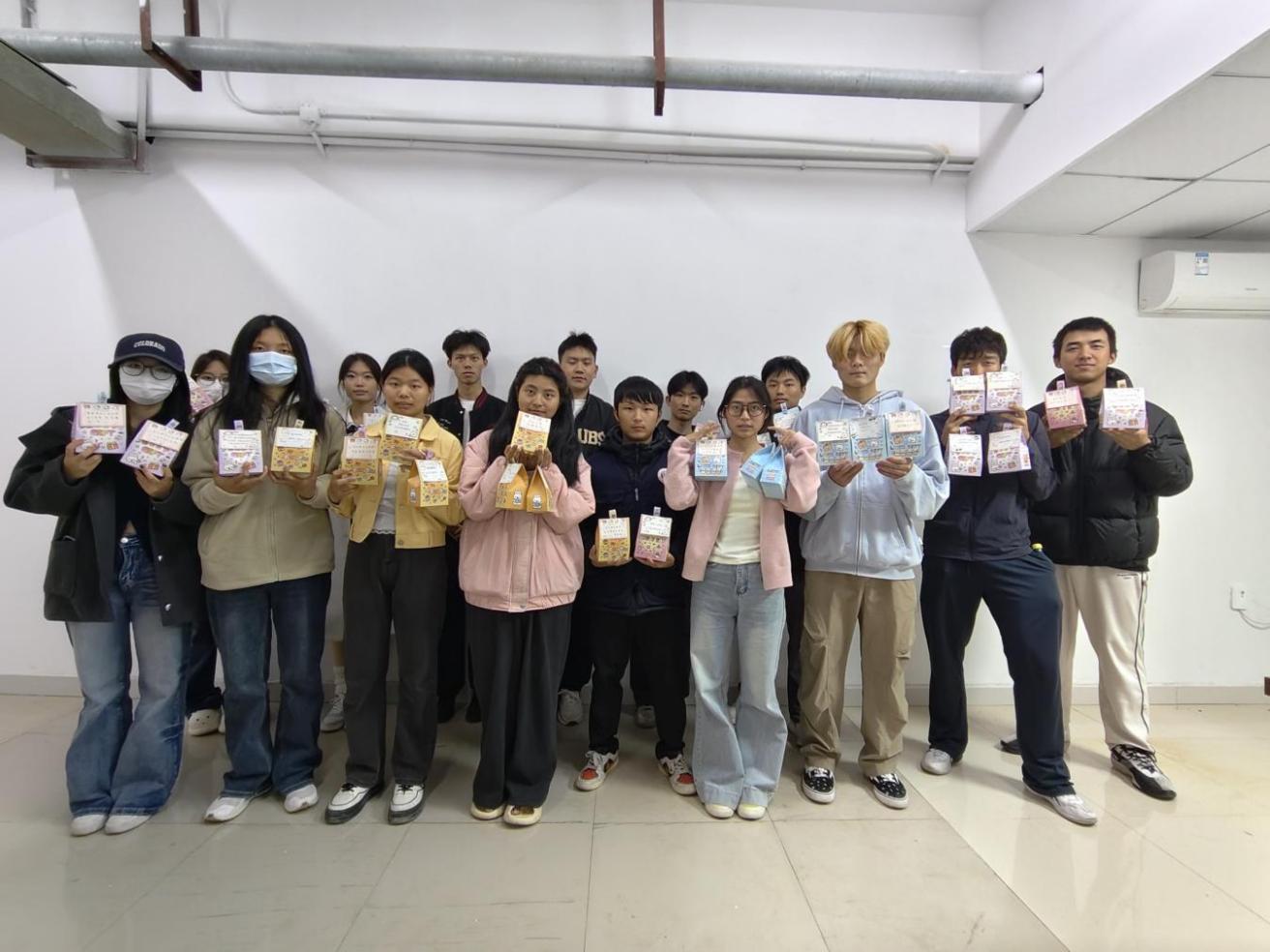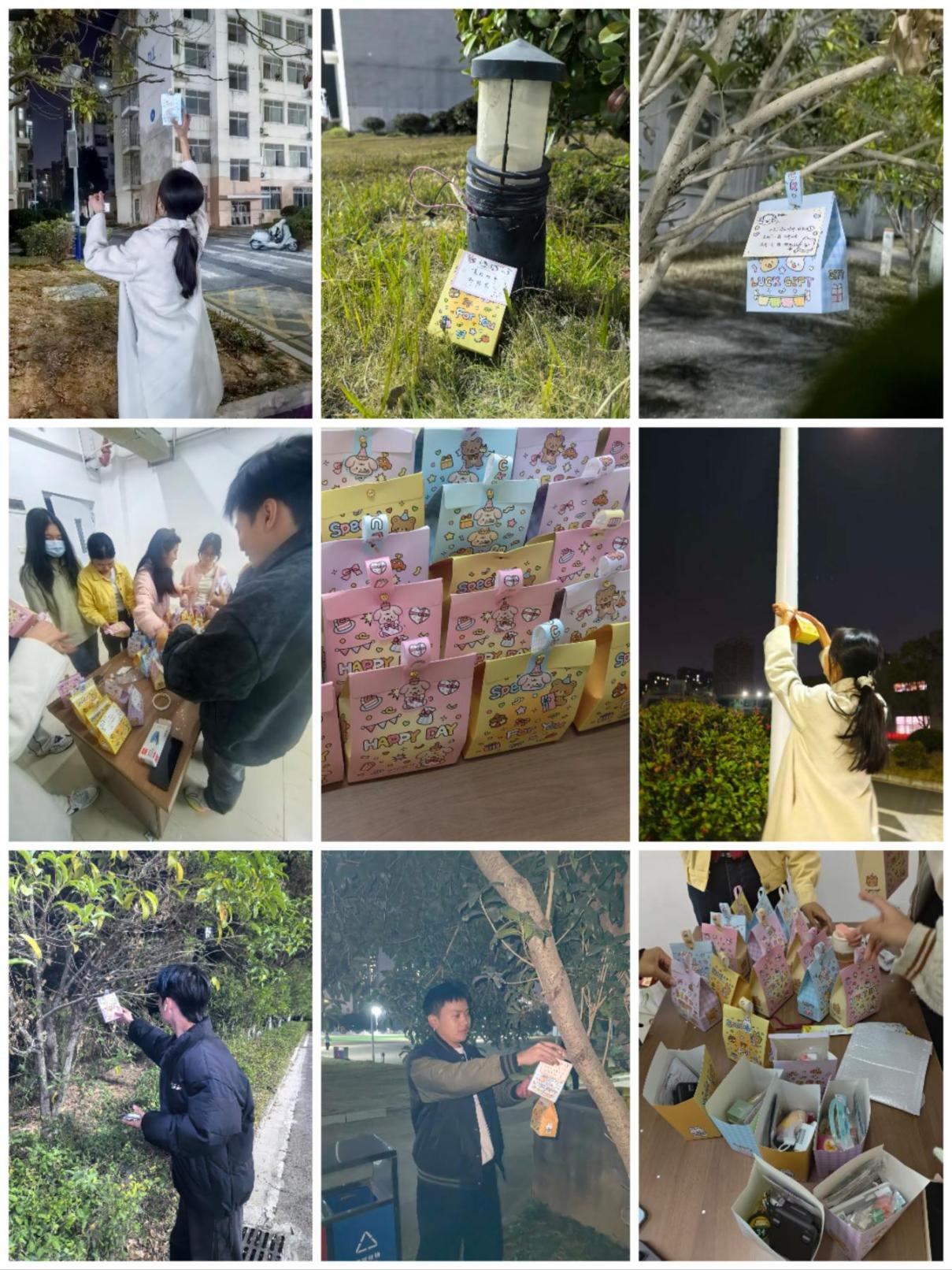 学院还精心准备了一批外观温馨、内含鼓励话语与实用小礼物的盲盒,布置在校园的各个角落。盲盒中的便签写有“愿你前路皆坦途”“今天你也超棒的”等暖心话语,配合书签、文创产品等随机礼物,让同学们在校园行走间偶遇惊喜,旨在营造关爱互助的校园氛围,缓解学业压力,增强情感联结。